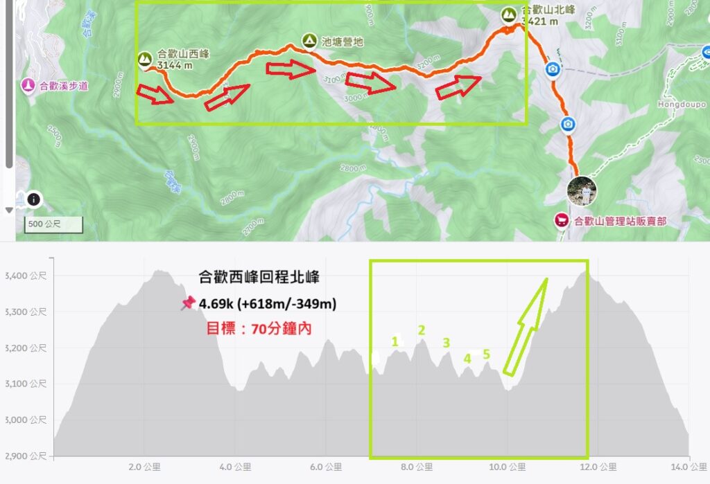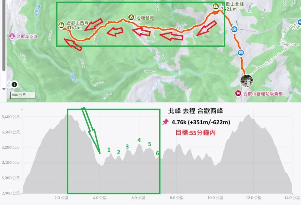 要維持強度,40分鐘內翻 5 顆山頭到合歡北峰鞍部
