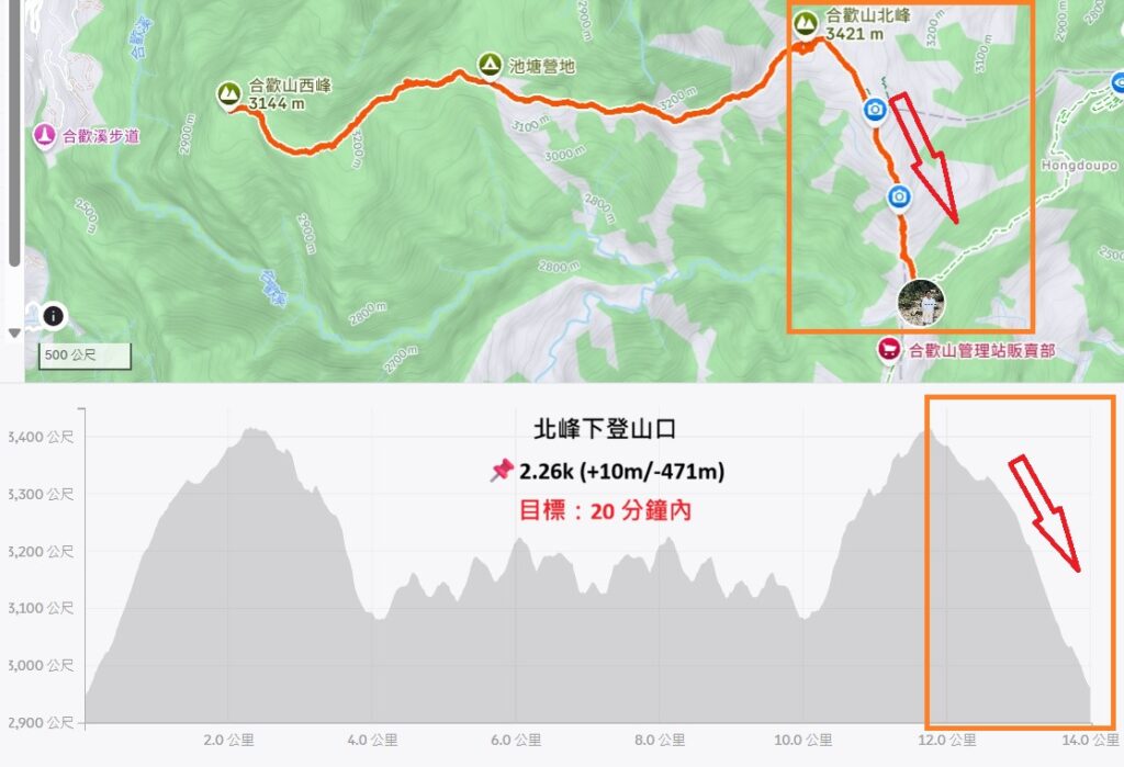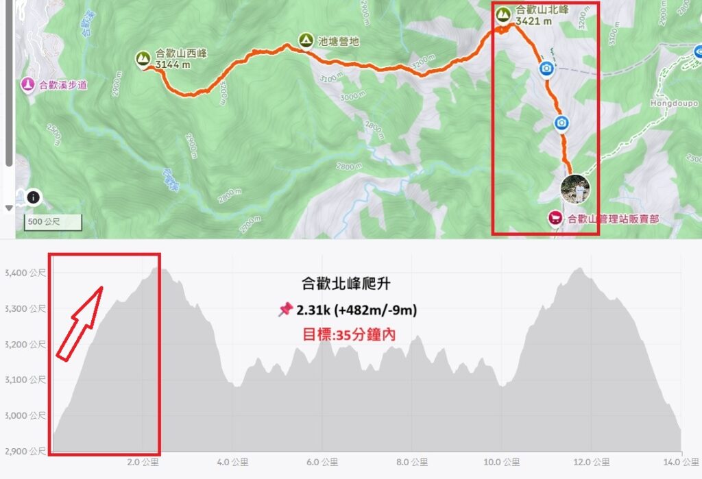 合歡西峰,水平距離 14 km / 爬升1400 m