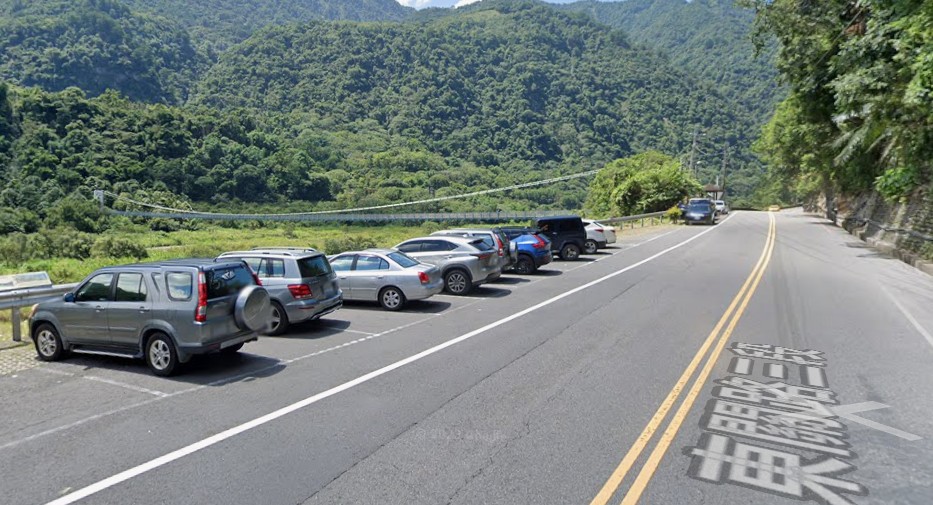 若白鹿吊橋旁都停滿了,再更往前200公尺處還有個白鹿公園停車場,8格汽車車位